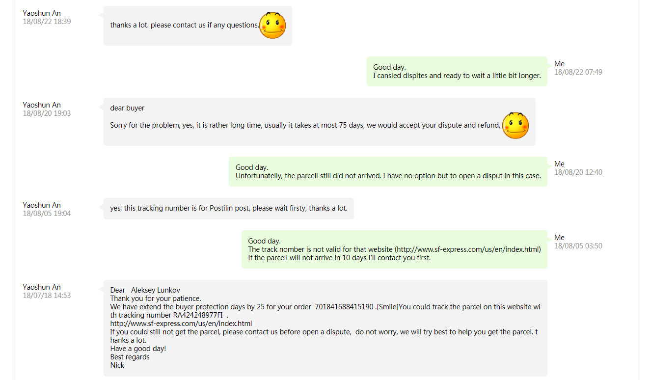 ниже прикладываю часть моей переписки в Чате с АлиЭкспрессом