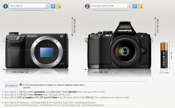 Полезный сайт, на котором можно сравнить размер и вес фотокамер.
