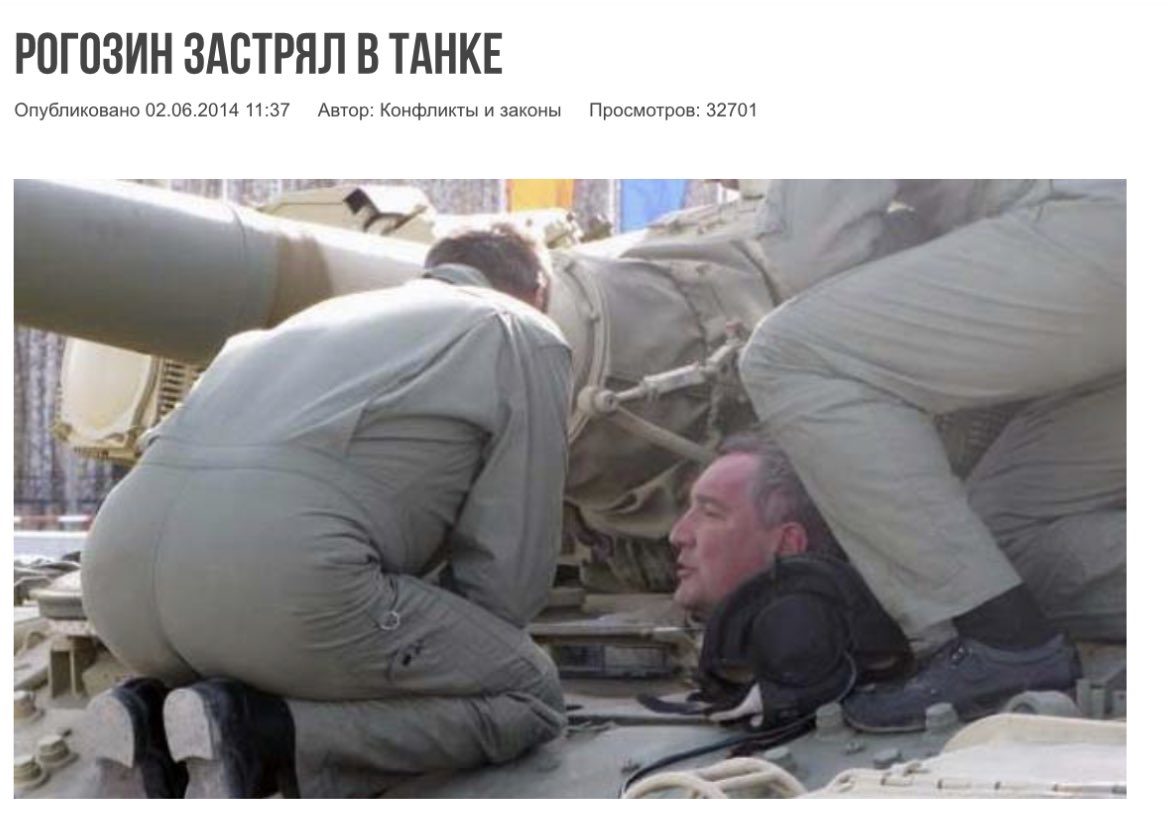 Бравый Рогозин выполнял ответственное боевое задание, подавляя своей огневой и прочей мощью превосходящие силы противника, и во время ожесточенного сражения получил почетное ранение.