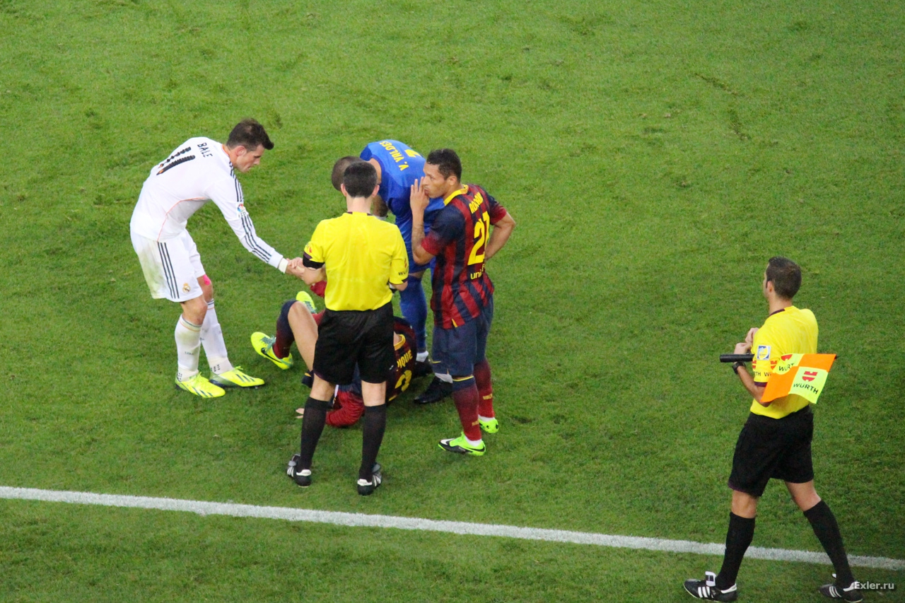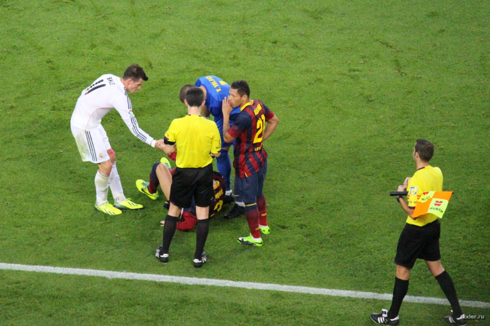 Пике помогает подняться Гарет Бэйл, которого "Реал" купил за 91 миллионов евро. Валлийскую вежливость - ее не пропьешь!