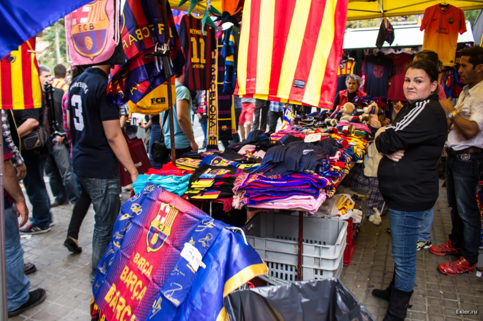 Рядом со стадионом бойко торгуют всевозможными сувенирными товарами с символикой "Барсы". На территории стадиона есть официальные киоски с этой символикой, также там есть большой магазин с этими сувенирами.
