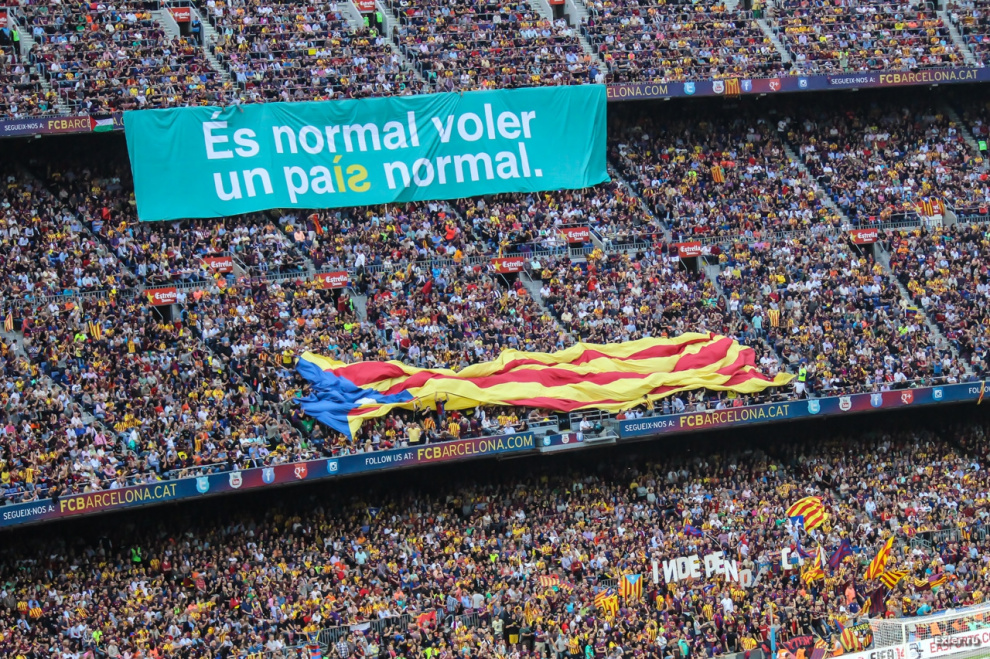 В какой-то момент на боковой трибуне вывесили огромный баннер с надписью на каталанском: "Это нормально - хотеть нормальную страну". Типа дайте нам независимости и все такое. И тут же по рукам поплыл огромный каталанский флаг.