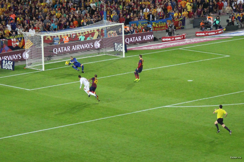 И вот тут на 91 минуте Роналду дает фантастический пас Хесе прямо к штрафной "Барсы", Хесе бьет, Вальдес не успевает поймать мяч и - гол в пользу "Реала". Гол был встречен трибунами мертвой тишиной: я даже сразу не понял, что произошло. Оказалось, что это гол. Потому что если бы Вальдес отбил, трибуны бы потом орали минут десять.
