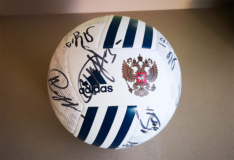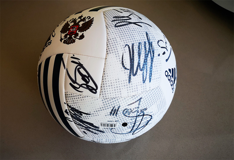 Предыстория. После Чемпионата мира по футболу 2018 со мной связался представитель российской сборной, который сказал, что российская команда хочет подарить мне мяч с автографами: мол, они читают мой сайт и хотят сделать такой подарок. Я сначала подумал, что это шутка такая, но оказалось, что не шутка - все совершенно серьезно.