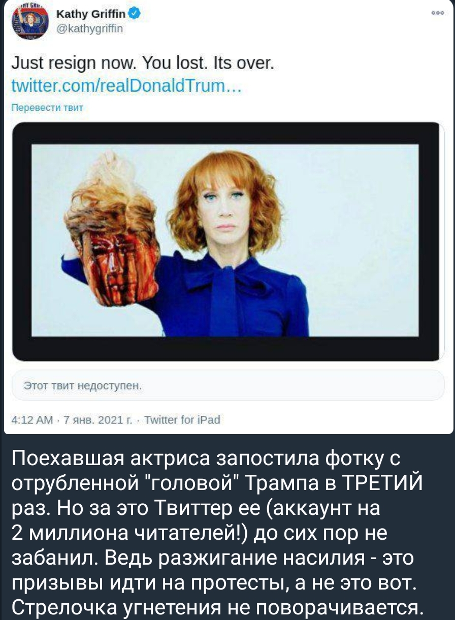 А по сути происходящего в США: Трамп - это раковая опухоль, которая кричит и извивается "Не берите в руки скальпель, не дадим пролить кровь, это негуманно и недемократично!"