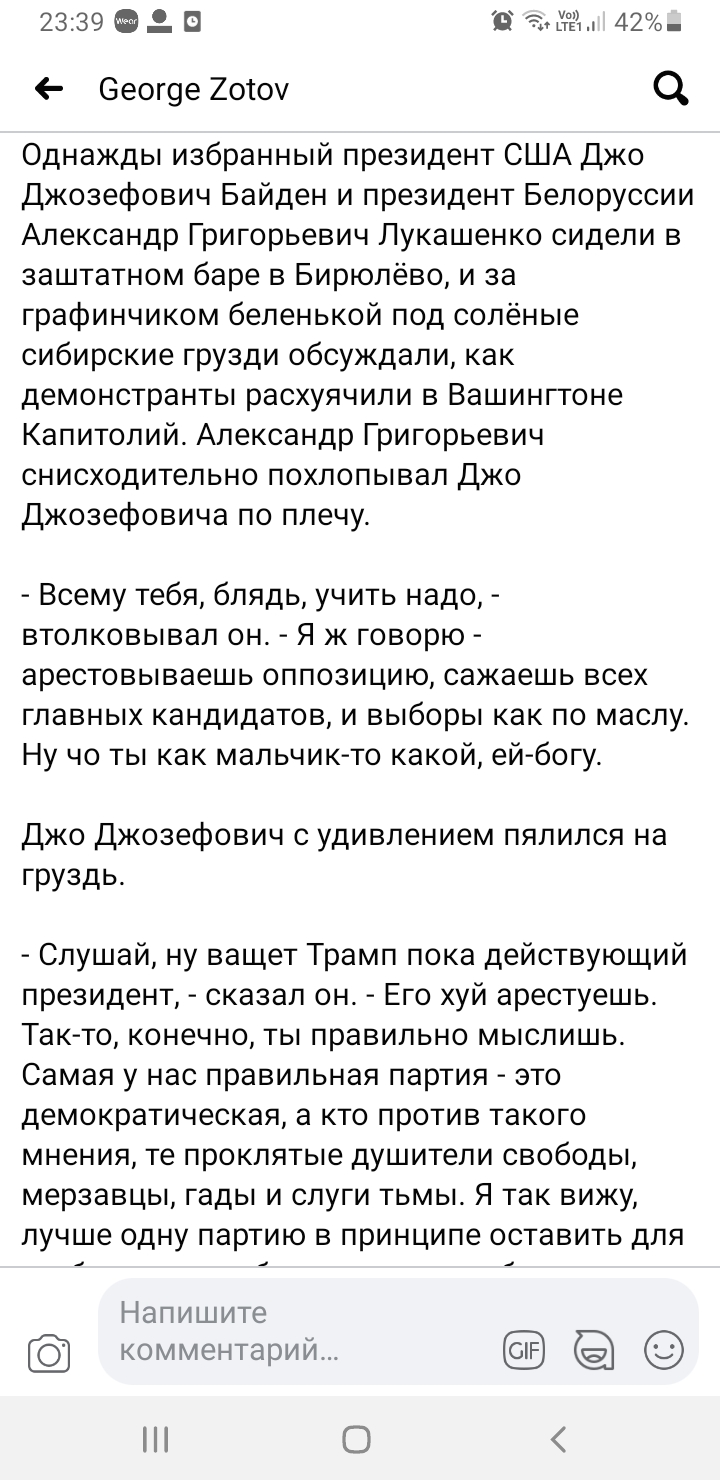 И каким образом результаты выборов говорят, что "Из тех 75 миллионов, что голосовали за Трампа, лишь очень небольшая часть верит, что их голоса действительно украли."? Очевидно, что - никаким. Ну разве что вы поясните в конце концов, каким образов из факта голосования (то есть из результатов выборов) вы делаете вывод, сколько именно людей верит или не верит, что их голоса украли.