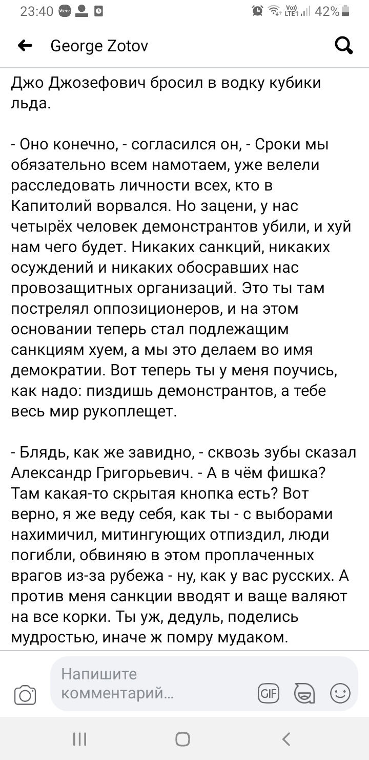 Я считаю, что "выводы" сетевого комментатора, как и любые другие логические выводы, живут ровно до того момента, как в них находят логические нестыковки. Я уже 25 лет в сети и знаю, что "доказать" и "вывести" можно что угодно из чего угодно, да так, что на опровержение уйдёт в 5 раз больше усилий.