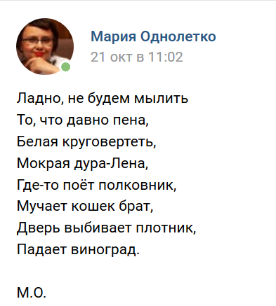 А автор статьи о ней - валенок, неспособный отличить троллинг от настоящей графомании, разбирающийся в поэзии, как деревянный стол в балете, который даже не обратил внимание ни на безукоризненное соблюдение размера, ни на безупречные и местами очень интересные рифмы.