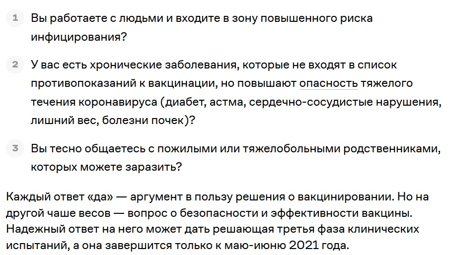 Факт №3. При этом о массовой вакцинации по всей стране групп риска (которые и должны быть привиты первыми!) речи до сих пор действительно не идёт, даже несмотря на успешное исследование.