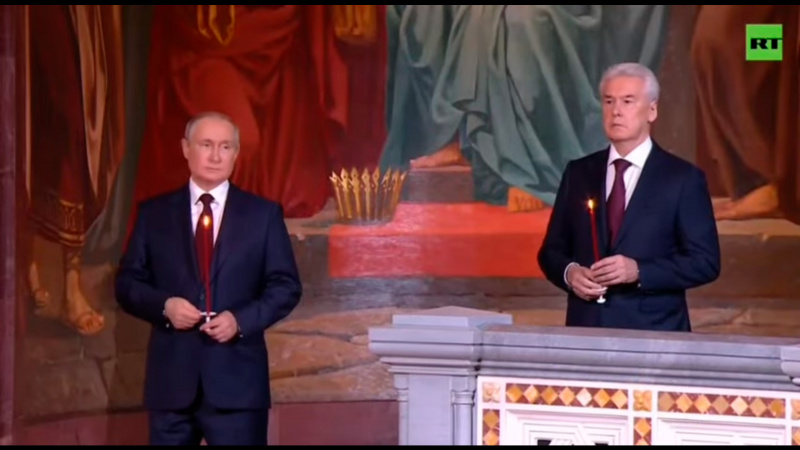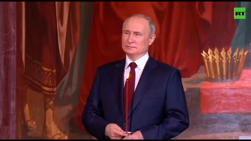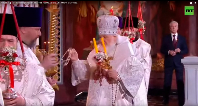 С видео с пасхальной службы, которую распространило Russia Today, наблюдаются некоторые странности.