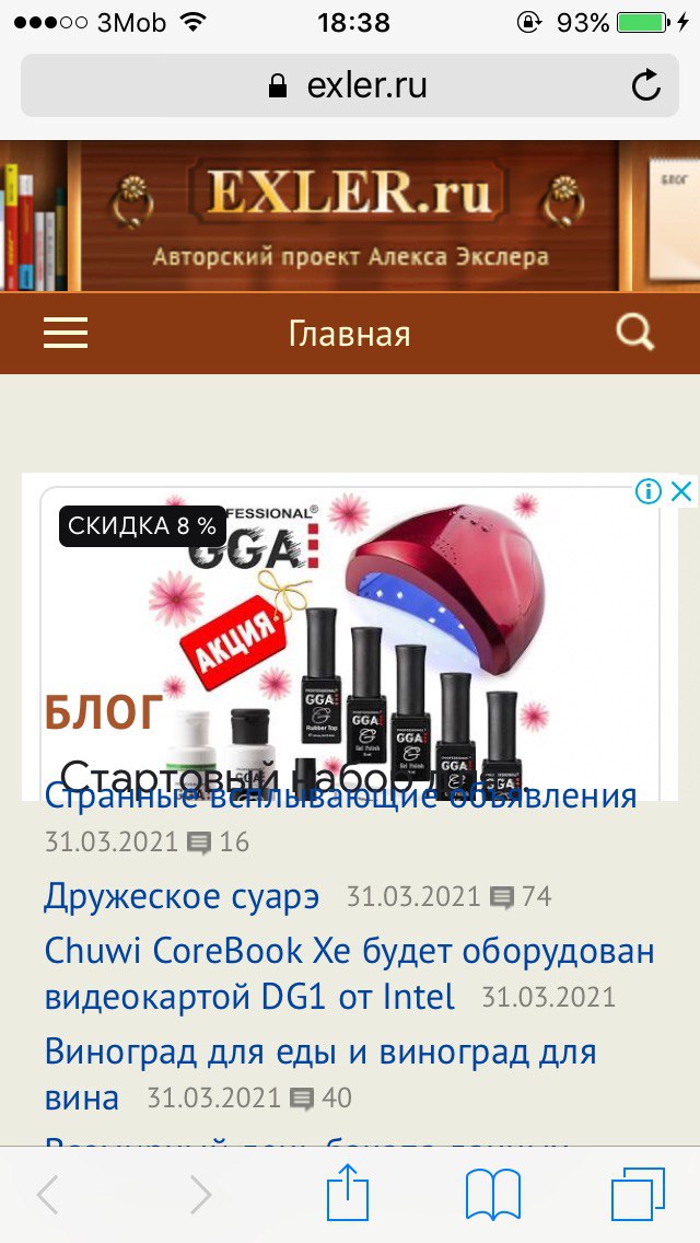 Алекс, может заодно можно поправить рекламу в мобильной версии? Несколько недель последних на iphone вот такой эффект - очень трудно пару верхних ссылок кликнуть из-за рекламы: