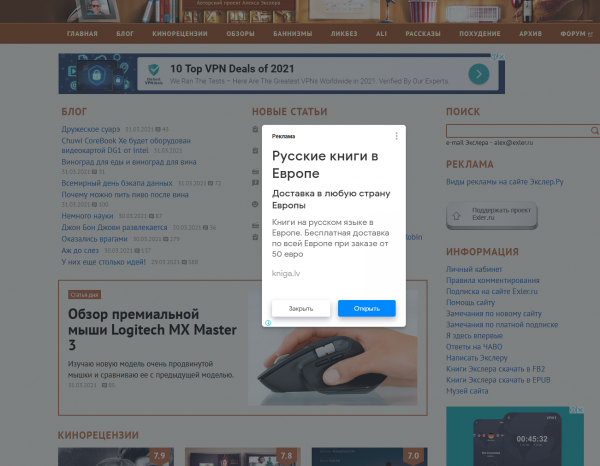 Народ стал жаловаться, что на сайте Exler.ru начали появляться странные всплывающие объявления, типа вот таких.