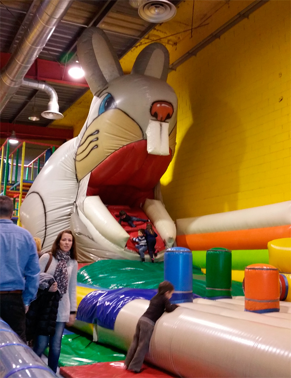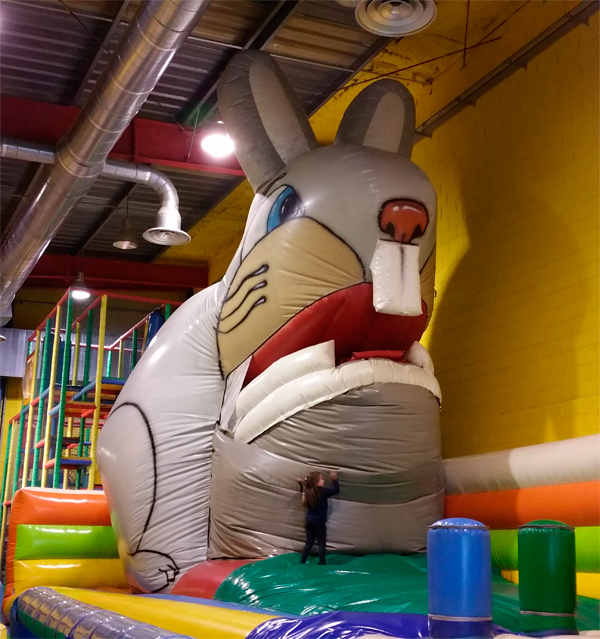 Повез ребенка в новый детский клуб. А там - вот такой страшный гигантский заяц.