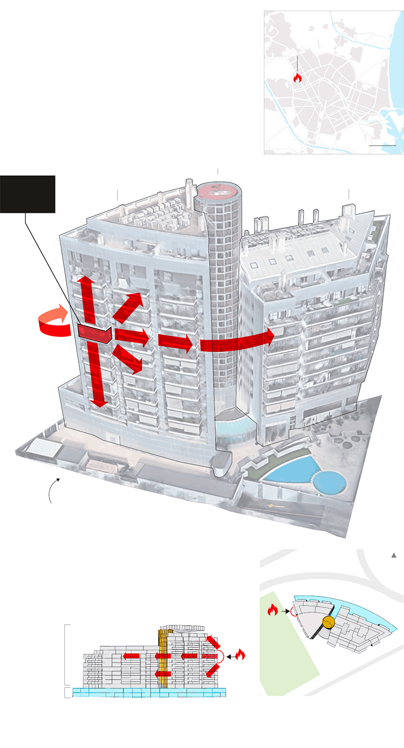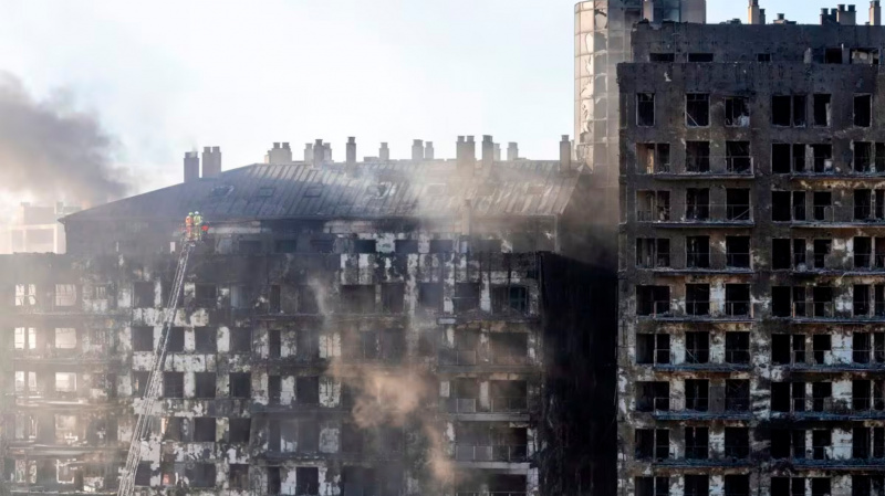 Полиция получила сообщение о пожаре в одной из квартир в Валенсии около половины пятого вечера в четверг. Через час пламя охватило весь комплекс, состоящий из двух многоквартирных домов в 14 и 10 этажей, соединенных башней-лифтом с панорамными окнами.