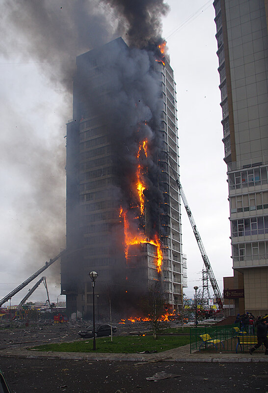 Аналогичный пожар был в высотке в Красноярске, когдабсгорел алюминиевый фасад. Там не погиб никто, все вышли по лестнице.