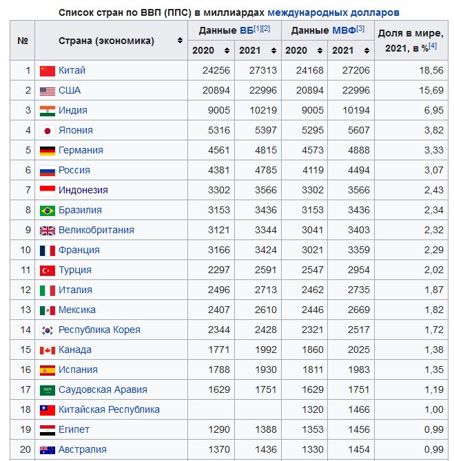 Если я правильно понял, это не сравнения фактических ВВП, это сравнения ВВП по паритету покупательской способности. То есть вся продукция пересчитывается в каких-то усредненных ценах.