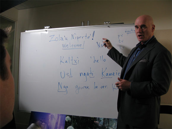 Актеры очень серьезно учили этот язык. Фроммер сказал, что Зои Салдана достаточно свободно говорила на нем. Да и Уортингтон также им неплохо овладел. Они даже могли с Зои разгваривать на этом языке в перерыве между съемками. Правда, Пол не гарантирует, что эти беседы были такие же осмысленные, как когда они трепались по-английски.