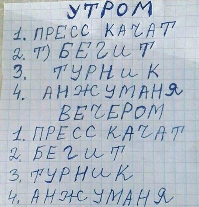 подьем в 6:30 пробежка 5 км подтягивание отжимания