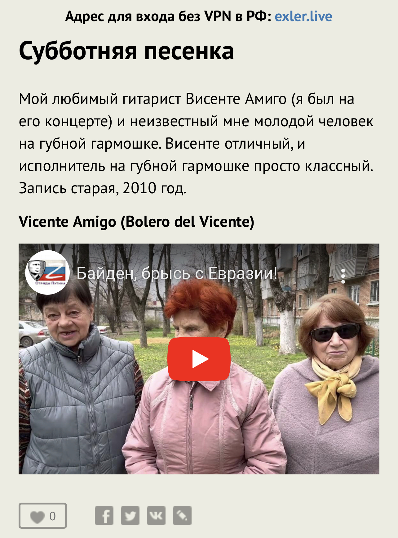 Мой любимый гитарист Висенте Амиго (я был на его концерте) и неизвестный мне молодой человек на губной гармошке. Висенте отличный, и исполнитель на губной гармошке просто классный. Запись старая, 2010 год.