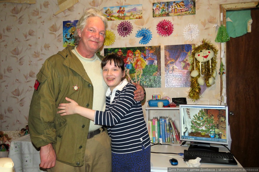 Вот здесь он как раз после вручения помощи какой то семье.Толи в Донецке , толи в Макеевке