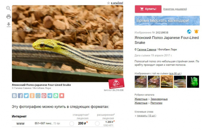 Есть такой фотобанк "Лори" (у меня там знакомая работает). Продают фотографии. Среди фотографий есть изображения животных, занесенных в Красную книгу - например, японского полоза.