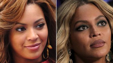Рианна и Бейонсе лицами не похожи от слова совсем. А фотку Бейонсе, кстати, не свежую взяли. Сейчас у нее уже тоже пластики столько на лице, сильно отличается она от самой себя.