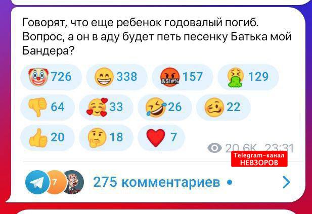А победа над грудными бандеровцами?! А убийство кучи мирных граждан?! Большинство руских это радует, потому что они, именно эти руские, не являются людьми. И отношение должно быть к ним соответствующее. Вернее, за 85% руского взрослого населения, которые являются полными дегенератами и выродками, ответит всё население Родной Говени.