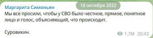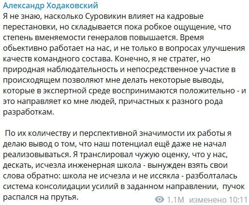 Ну, посмотрим, как будут развиваться события. Хорошо бы, конечно, чтобы Суровикина засуровикили к чертям.