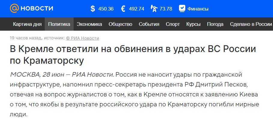 А вот я всё риа новости читаю, там про другое: при российском ударе по Краматорску пострадали иностранные наемники