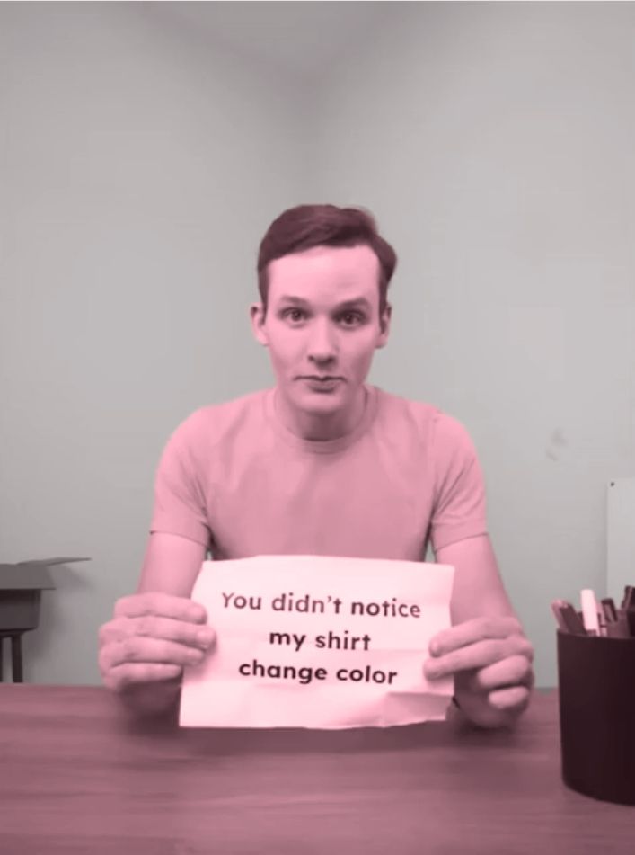 А я реально не заметил как у него менялся цвет рубашки! Да он психолог! 😄