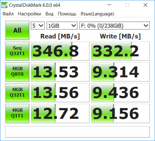 Вот пример A-Data UE700 32 GB (CrystalDiskMark):