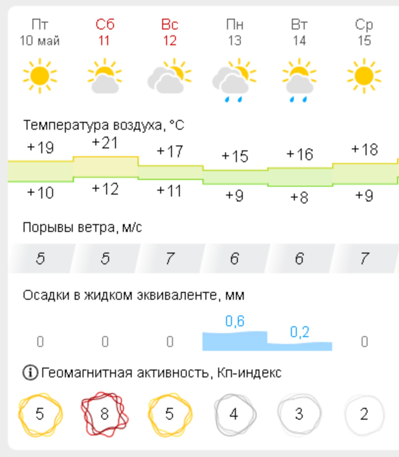 Да, там указан kp-индекс, он, возможно, достигнет 8. А я про то, что написано в прогнозе от NOAA Space Weather Prediction Center, а именно про класс G4. Они связаны. Обычно цифра перед G это kp-4. Однако если kp=9, то тоже это считается G4. Супербуря это G5.