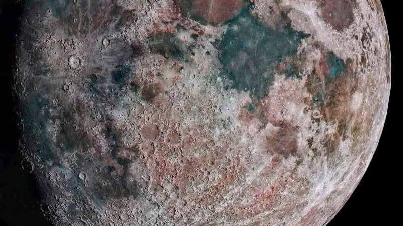 А поскольку химический состав на фото не виден, то автор раскрасил фото лично, руководствуясь отрывочными данными по составу Луны и пролетарским чутьем.