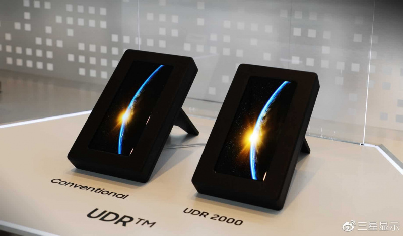 При этом производитель разместил на стенде два экрана для сравнения и отображения. Один из экранов имеет сертификат «UDR 2000», а другой — традиционный экран. Видно, что новый экран полностью превосходит традиционный экран по яркости и цветопередаче.