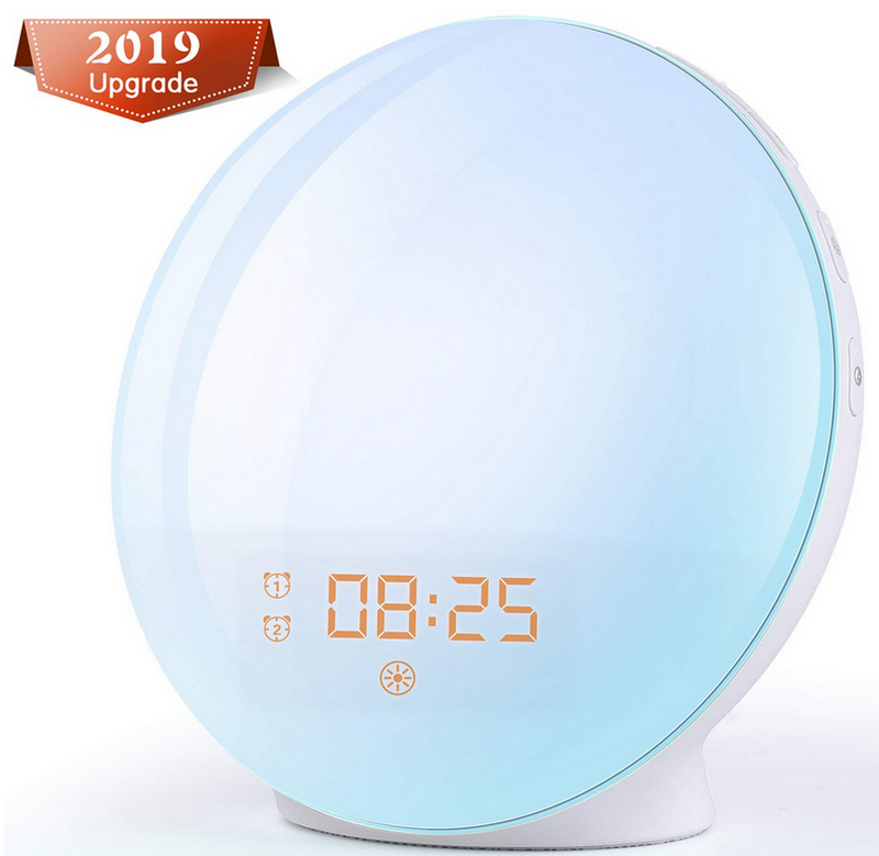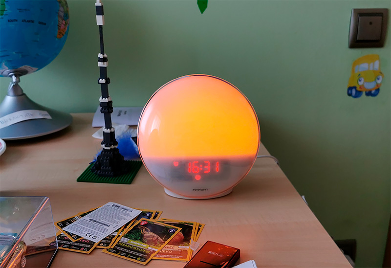 В Каталонии начался учебный год, изучал я всякие варианты наиболее мягкого и ненапряжного пробуждения для ребенка. Наткнулся на целую серию интересных светомузыкальных будильников. Забавная штука: они умеют заранее до сигнала будильника постепенно включать свет заданной цветовой температуры, к моменту срабатывания звукового сигнала выводить яркость на полную мощность (при этом человек может уже проснуться только от света), ну а потом начинает звучать выбранная музыка, причем тоже сначала тихо и только потом добавляя громкость. Выглядит эта штука вот так, стоила на "Амазоне" €31.
