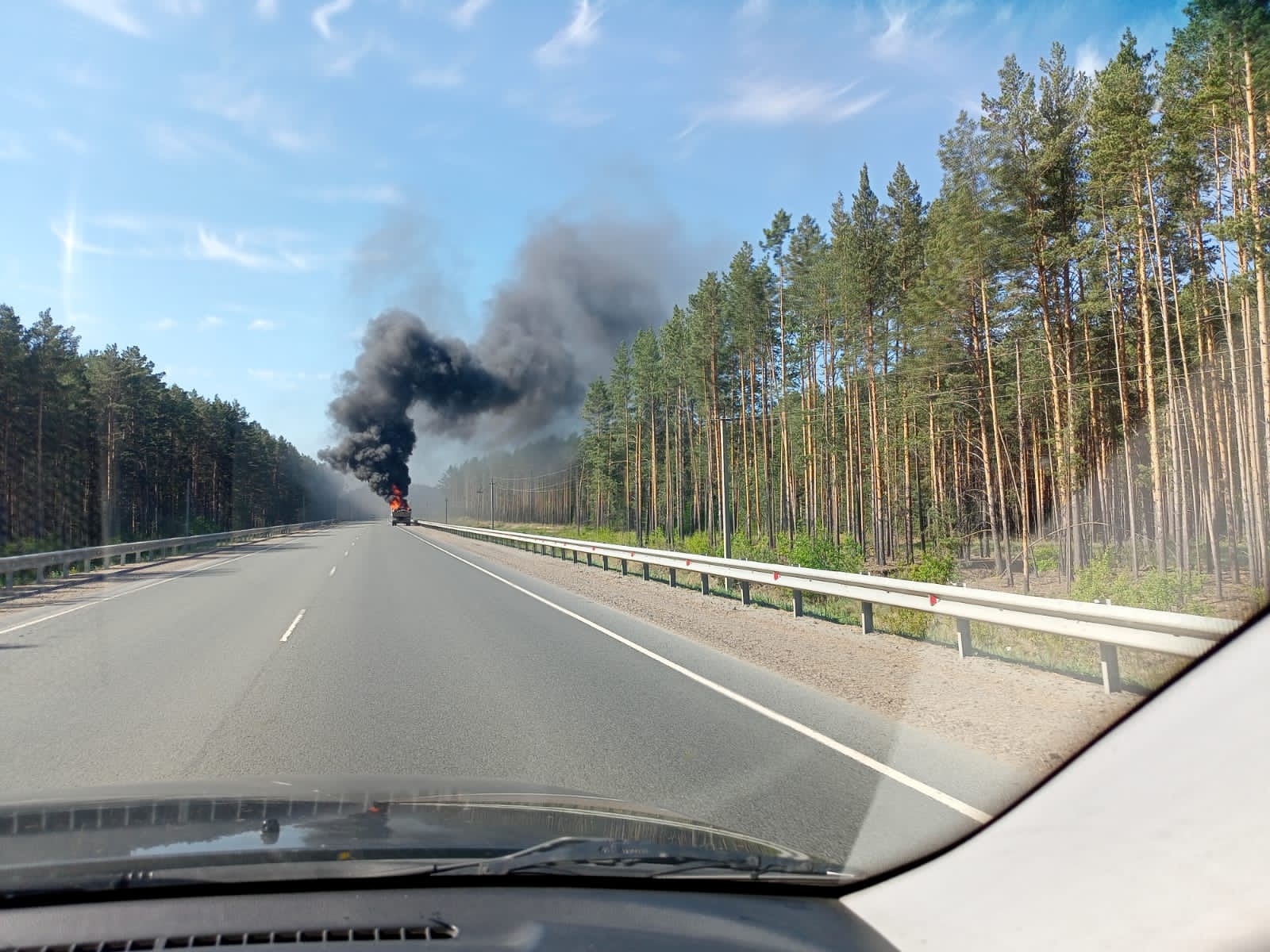 Проезжал мимо, посмотрел - думаю, что с водителем все в порядке: кабина совершенно нетронутая, место водителя целое, даже стекол разбитых нет.