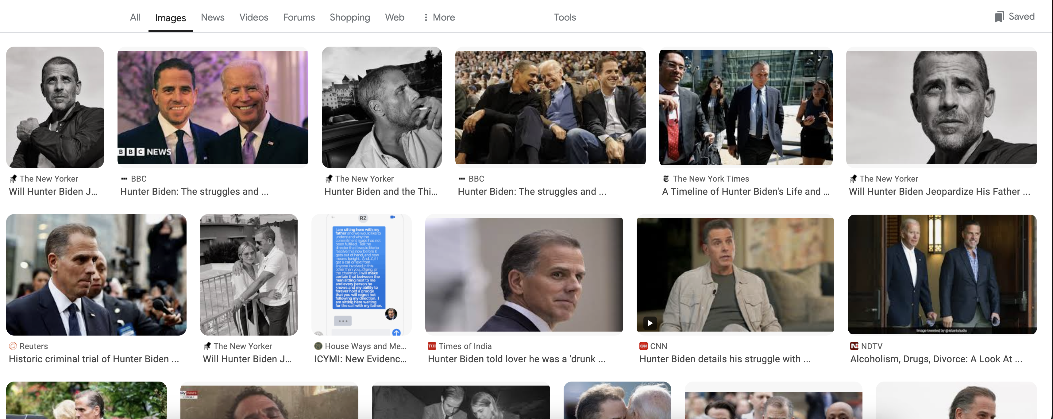 Например, фото пьяного, обкуренного, с проститутками и пр. Хантера Бйадена навалом в сети, но Гугл их сознательно скрывает, а как это называется?