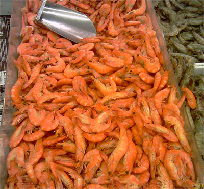 Здесь, в Испании, все не совсем так. Как я уже писал, креветки здесь бывают свежие сырые, свежие вареные, замороженные сырые. Так вот, сырые креветки бывают не только темно-зеленоватые, но и красноватые, причем различных сортов - от маленьких до больших. И это именно сырые, а не вареные - вареные очень заметно отличаются.