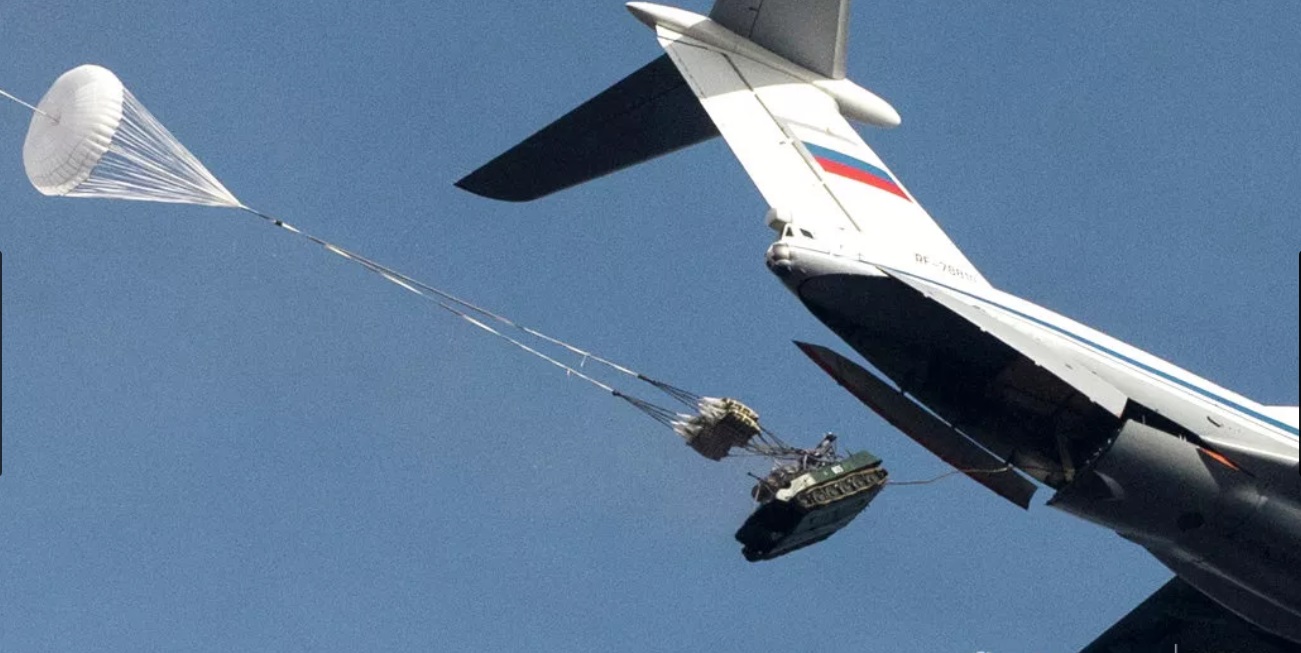 А так всё по советскому фэн-шую - десантирование техники с экипажем парашютным способом: