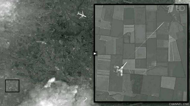 Точно, проспал! На память, без гугля: Боинг 767 (вместо нужного 777-го), взятый из первой фотки поиска "боенг, вид сверху" с подрезанным крылом, имеющий длину 4.5км над гугель мэпс 2-летней давности с застывшими с той поры облаками, спасаясь от истребителя Миг, который на самом деле Су-25 (какой был, тот и "полетел"), длиной 900 метров, пускающего криво прифотошопленую ракету, в системе с тремя солнцами (свет падает на объкты с разных сторон, кроме нужной для времени события). Ничего не упустил? Существование одного детского фотошопа не является априори доказаткльством, что все нечеткие видео есть фейки - лучше погуглите как выглядят видео с ночных приборов.
