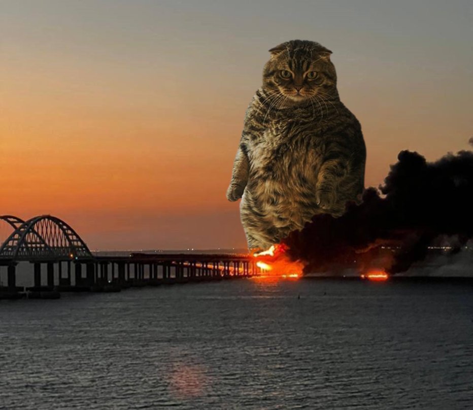 На фоне Херсонского моста, в который влупили уже больше 100 Хаймарсов в один участок, а он остается проходимым для легковушек - этот выглядит уж совсем убого.