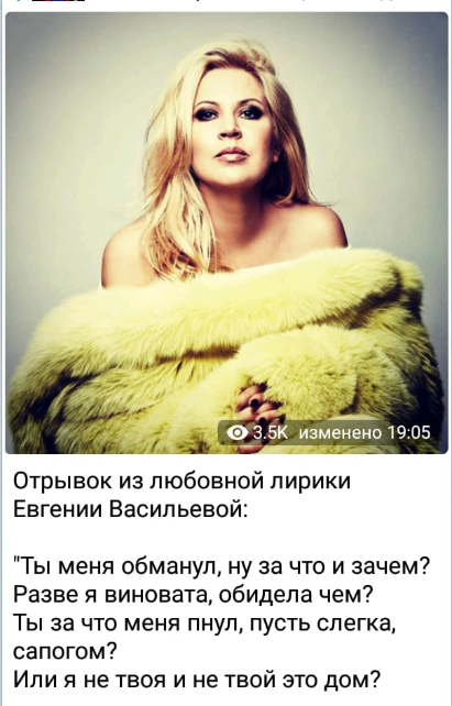 И в ответ, на распев ... "Потому что нельзя быть на свете, красивой такой ...."