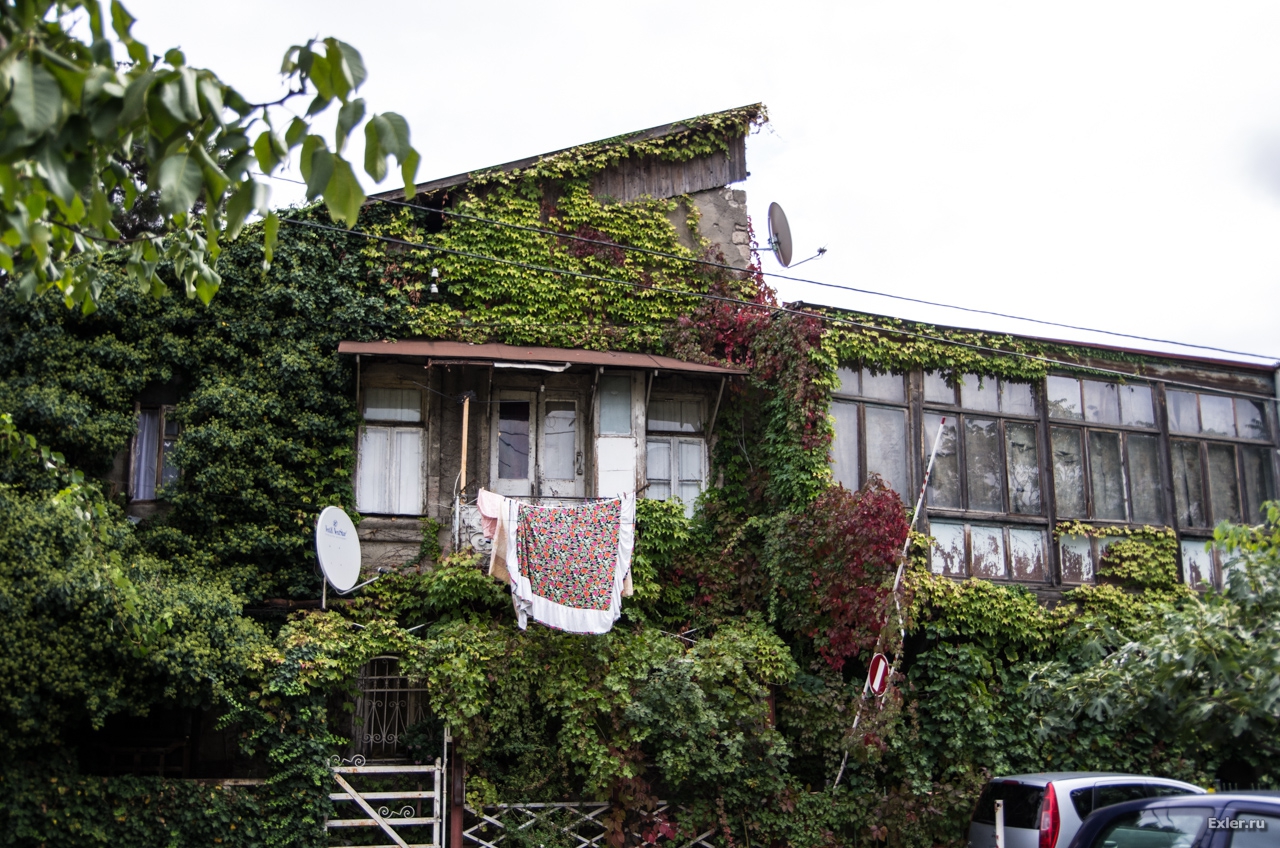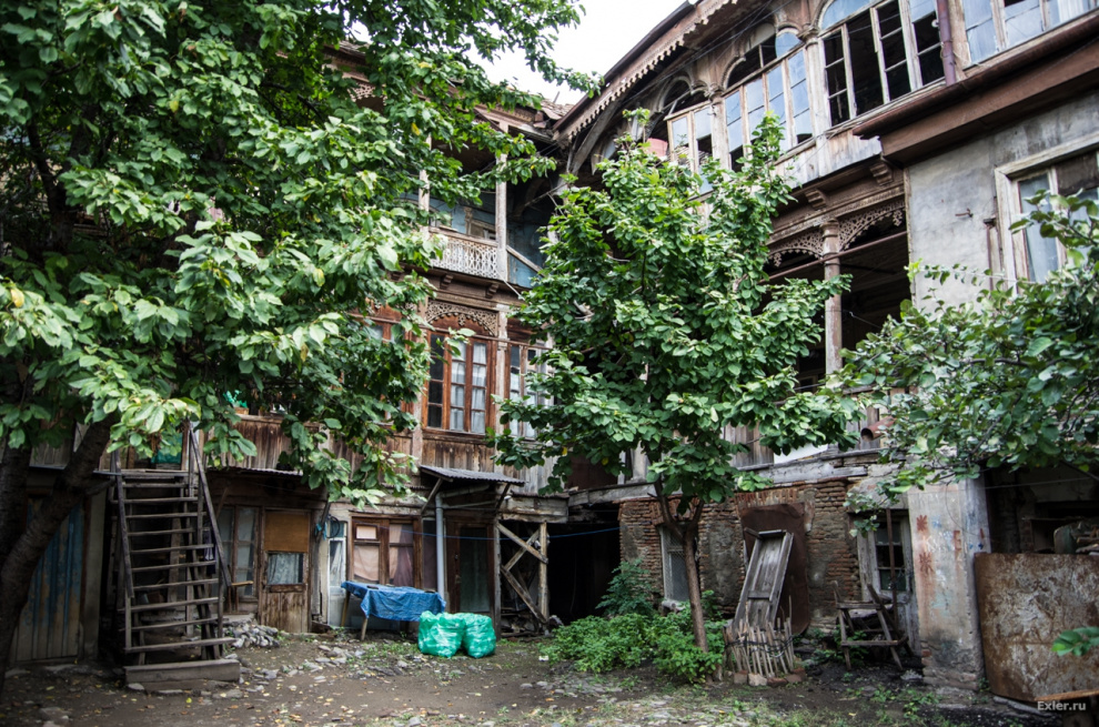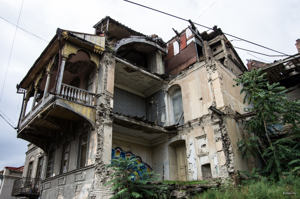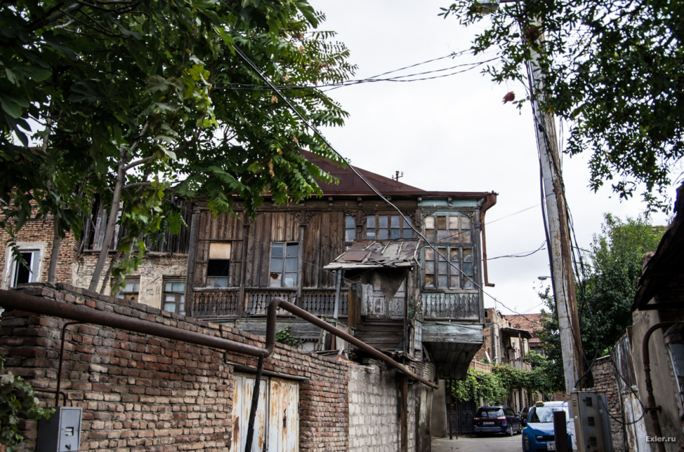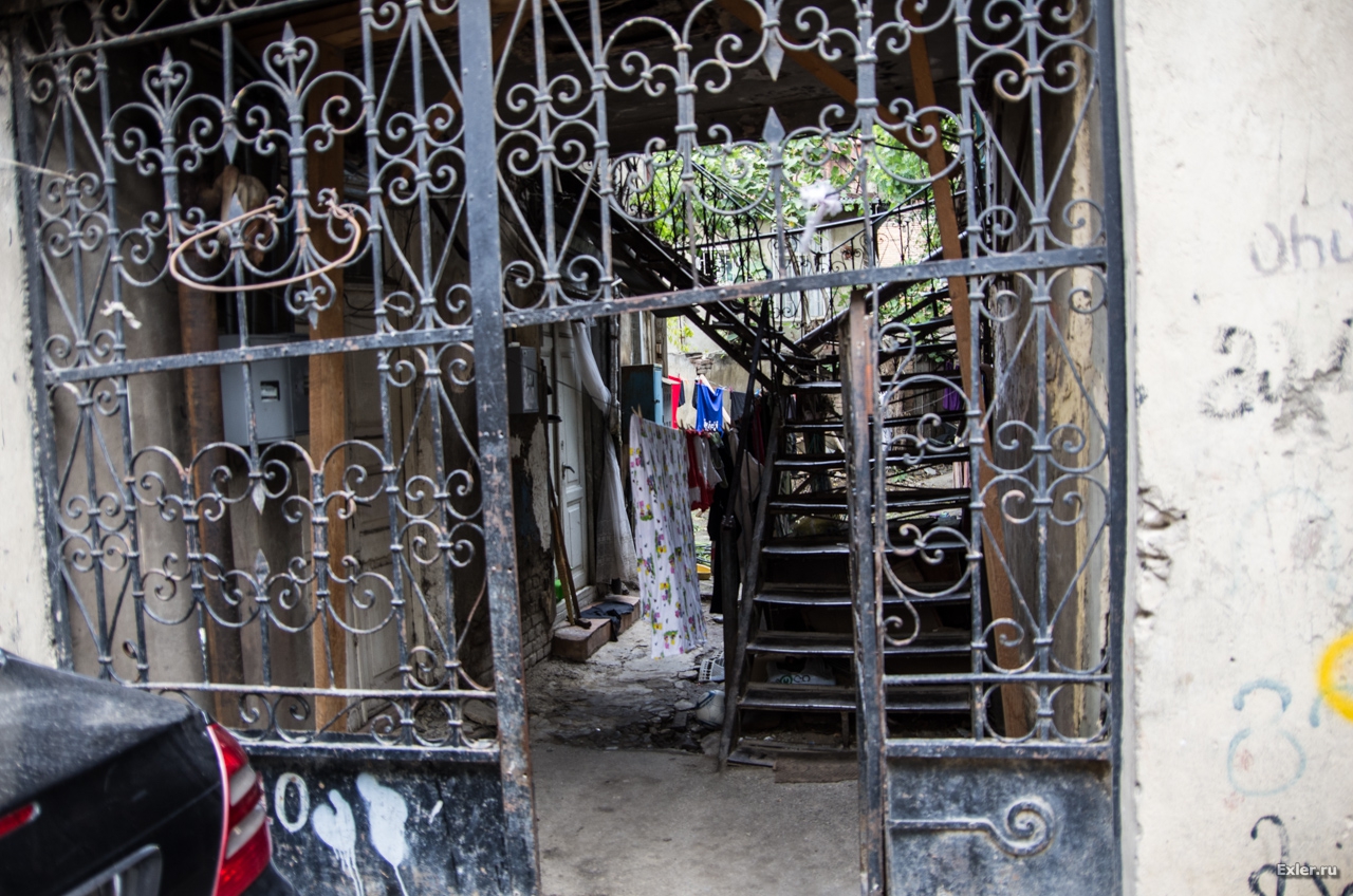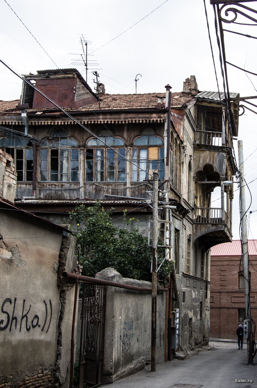 Саакашвили в свое время хотел выкупить у жителей эти дома и квартиры по реально высокой цене за метр и сделать тут новый красивый район. Но когда жители посчитали свою жилплощадь с учетом балкончиков, чуланов и так далее, общая сумма получилась настолько непомерная, что от этой идеи отказались. И в знак ответной любезности правительство объявило этот район историческим, и это означало запрет на любые внешние перестройки. В результате район вылядит как после атомной бомбардировки - вы это сейчас увидите.