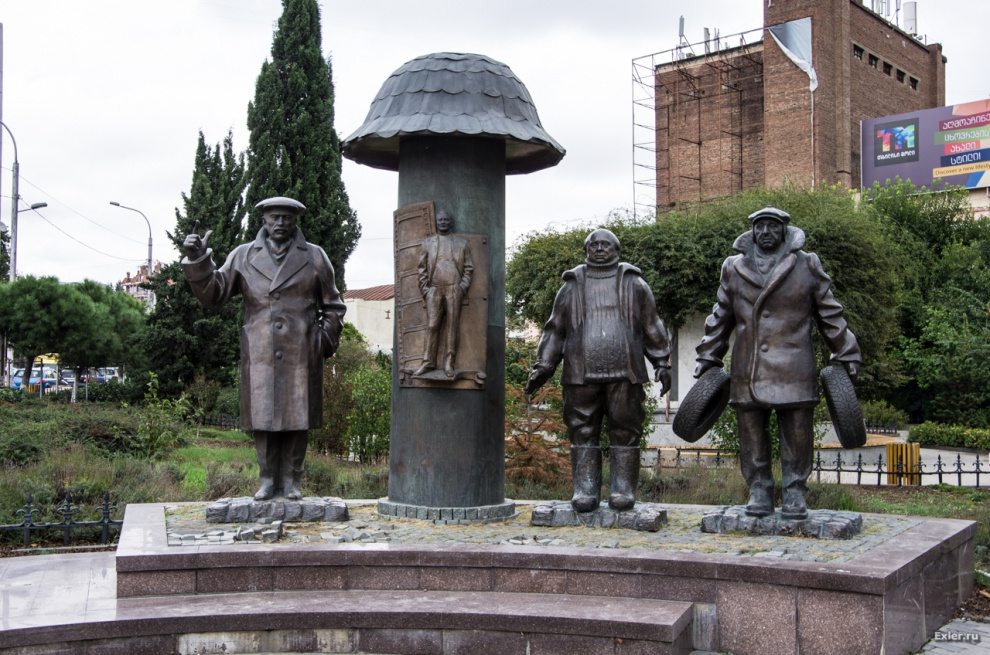 Площадь с памятником героям "Мимино". В центре на грибочке - Георгий Данелия.