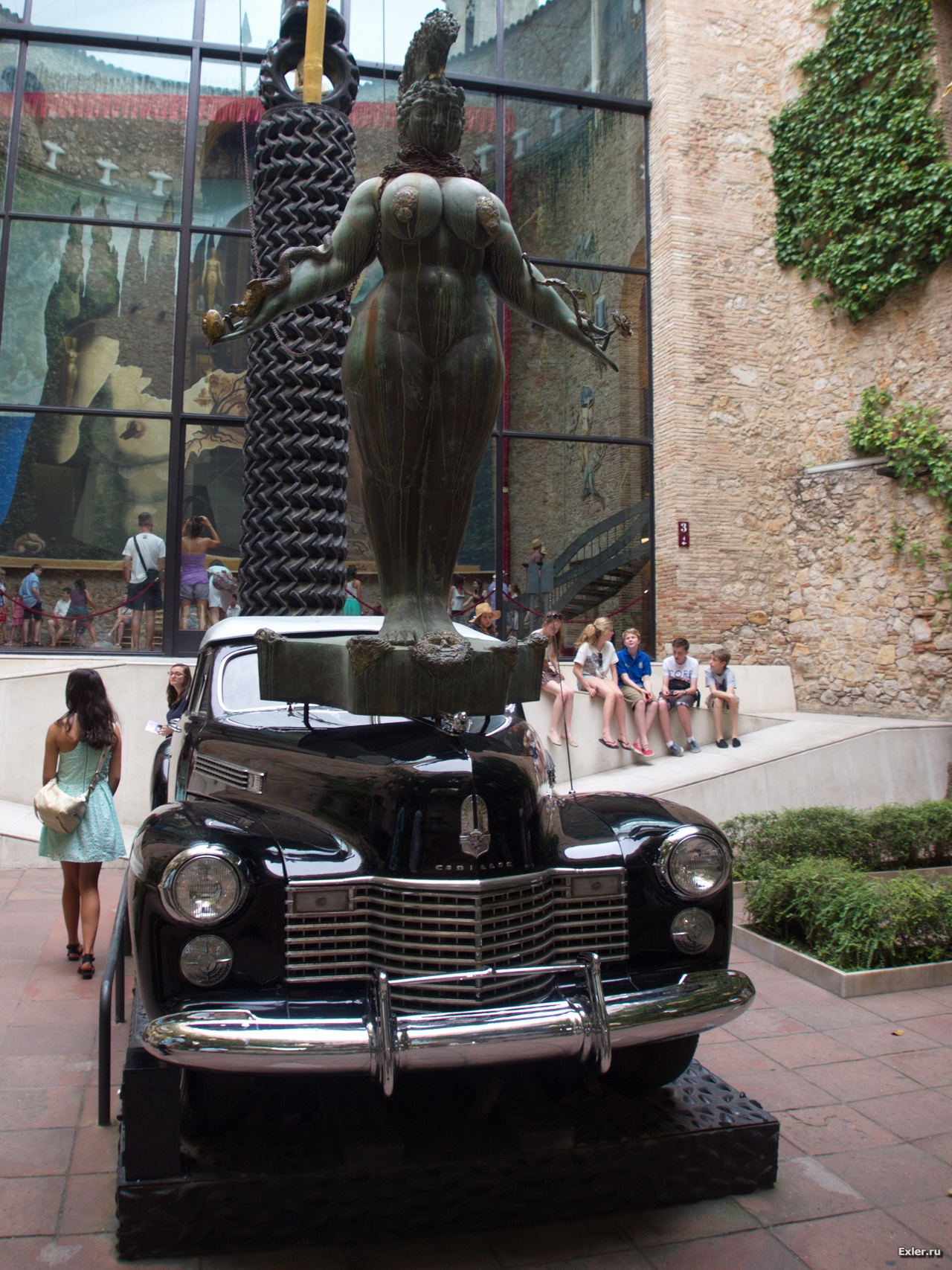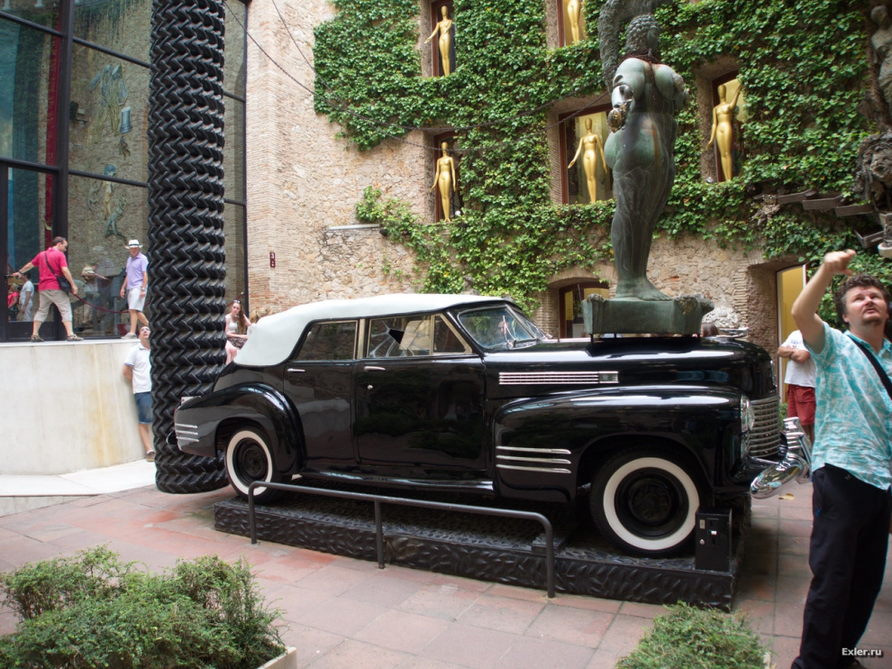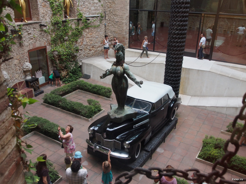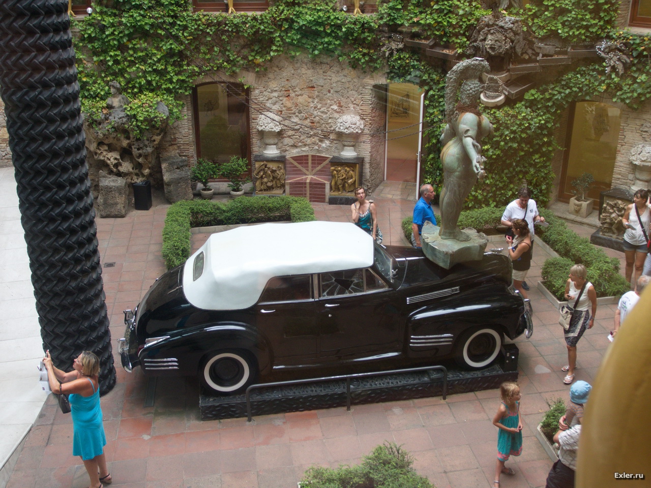 Главный зал музея - знаменитый "Дождливый кадиллак" или "Дождливое такси". Вообще эту хохму Дали впервые соорудил для французской сюрреалистичной выставки. Внутри такси идет дождь (если кинешь один еврик), растет зелень. На французской выставке по заднему сиденью также ползали бургундские улитки, но для музея от улиток было решено отказаться.