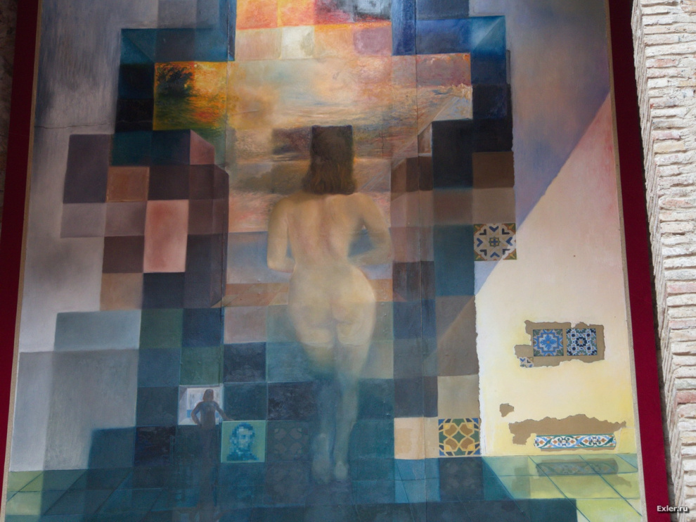 Видите картину с пикселизированным Линкольном? С ней я сначала подумал, что у меня крыша поехала. Потому что на картине была изображена обнаженная Гала, идущая к морю. Фотографирую - и вижу, что там получается совершенно другая картина, а именно пикселизированный Линкольн. Отвожу фотоаппарат, смотрю - Гала.