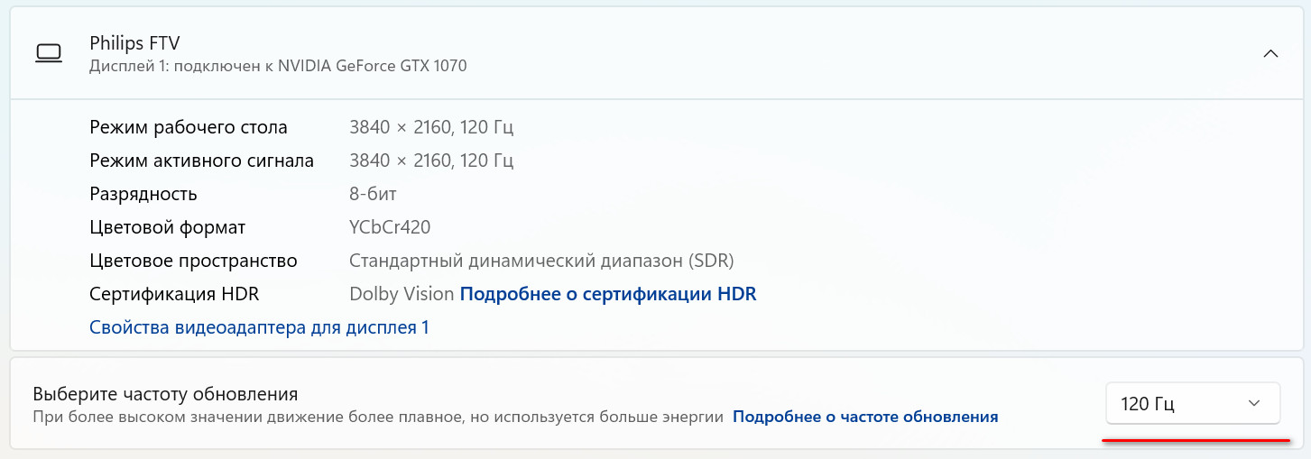 Моя Geforce GTX 1070 свободно тянет 4К 120 Hz через HDMI. Скриншот настроек показать? 😄