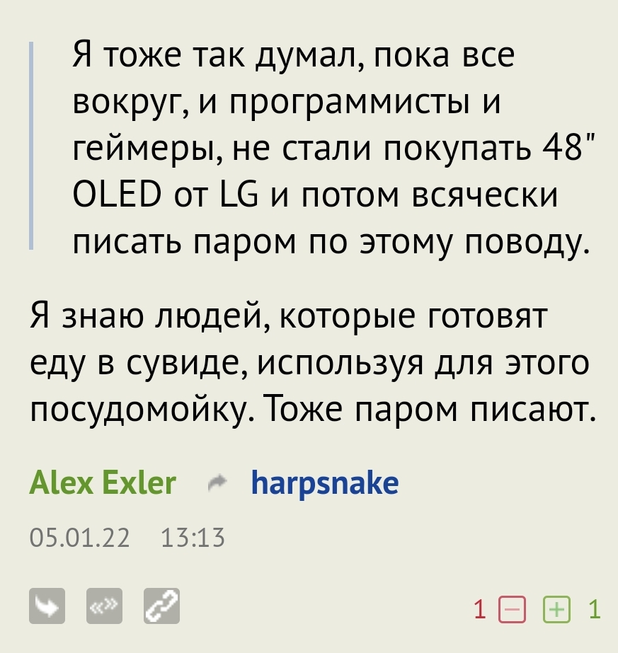 Для меня лично как-то страшно OLED в виде монитора пока, как там будет выглядеть на мониторе нижняя панель Windows года через два...