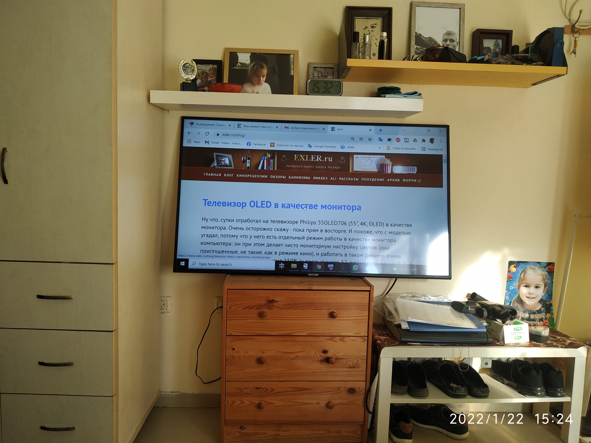 Ну что, сутки отработал на телевизоре Philips 55OLED706 (55", 4K, OLED) в качестве монитора. Очень осторожно скажу - пока прям в восторге. И похоже, что с моделью угадал, потому что у него есть отдельный режим работы в качестве монитора компьютера: он при этом делает чисто мониторную настройку цветов (они приглушенные, не такие, как в режиме кино), и работать в таком режиме очень комфортно. Масштаб я поставил 150% (у предыдущего 32-дюймового масштаб был 125%) - и так вообще отлично: нормально все видно, при этом на экране дофига всего помещается, что мне и было нужно. В сравнении с предыдущим монитором (43-дюймовым, который я вернул) это прям совсем небо и земля.