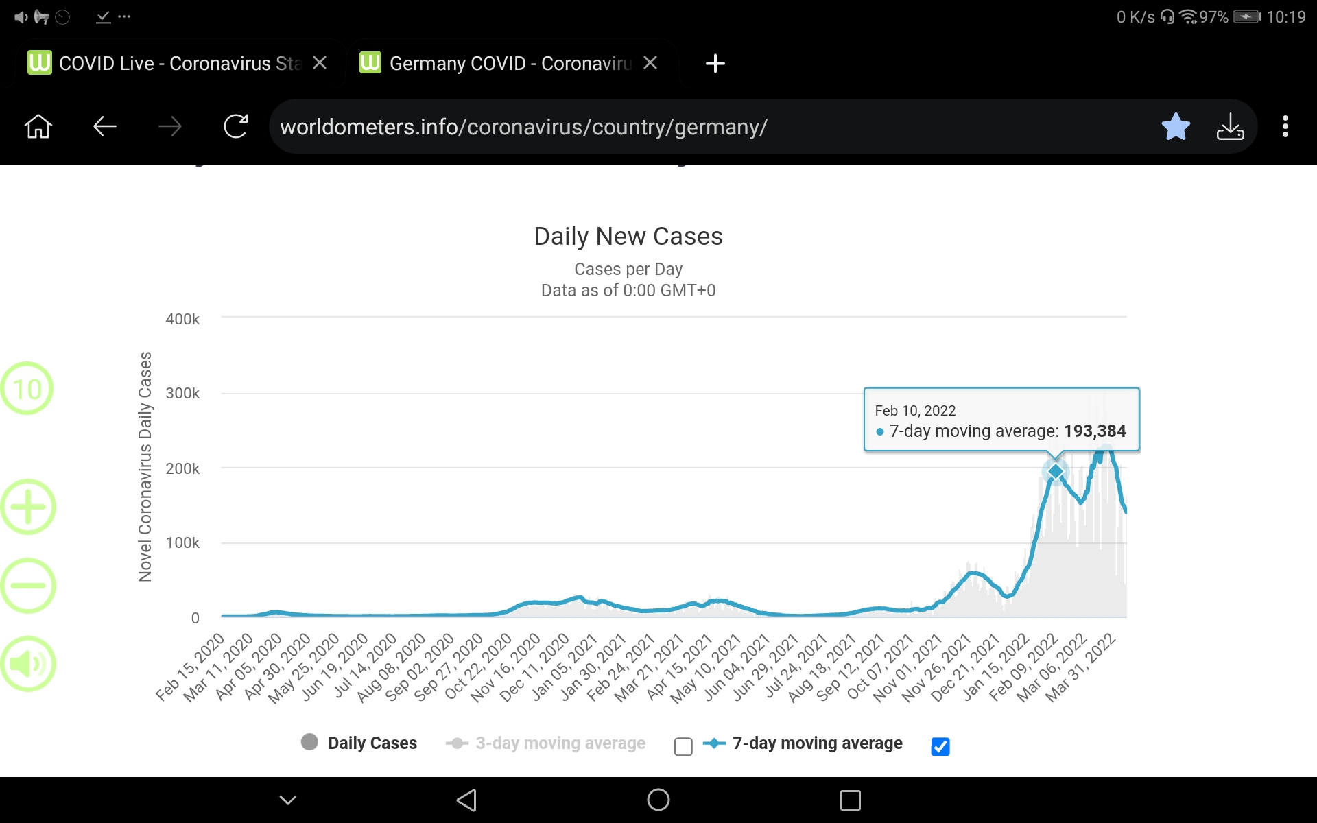 В Германии тоже уже месяц длится ни с чем несопоставимый в прошлом всплеск заболеваемости омикроном. Уровень вакцинирования в районе 75%, но число тяжёлых на миллион примерно 23, что в 3-4 раза меньше прошлых пиковых значений. Система здравоохранения и раньше справлялась, а теперь тем более. Из ограничений - только маски в общественных местах.